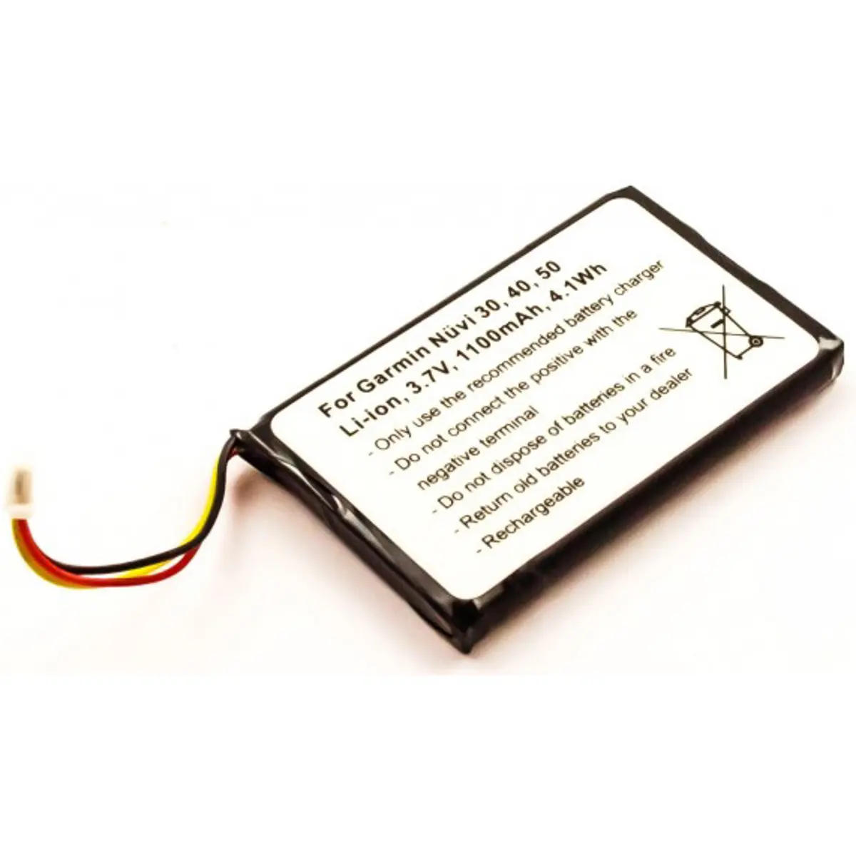 Bateria recarregável de Li-Ion para dispositivos GPS, com 3.7V, 1100mAh e 4.1Wh. Ideal para navegadores portáteis, oferece autonomia estável, carregamento seguro e instalação simples. Dimensões compactas de 54.8x34.2x5.7mm e peso de 24 g, facilitando a reposição em viagens ou situações de emergência. Compatível com baterias intercambiáveis de Li-Ion para GPS, proporcionando fiabilidade e desempenho consistentes.