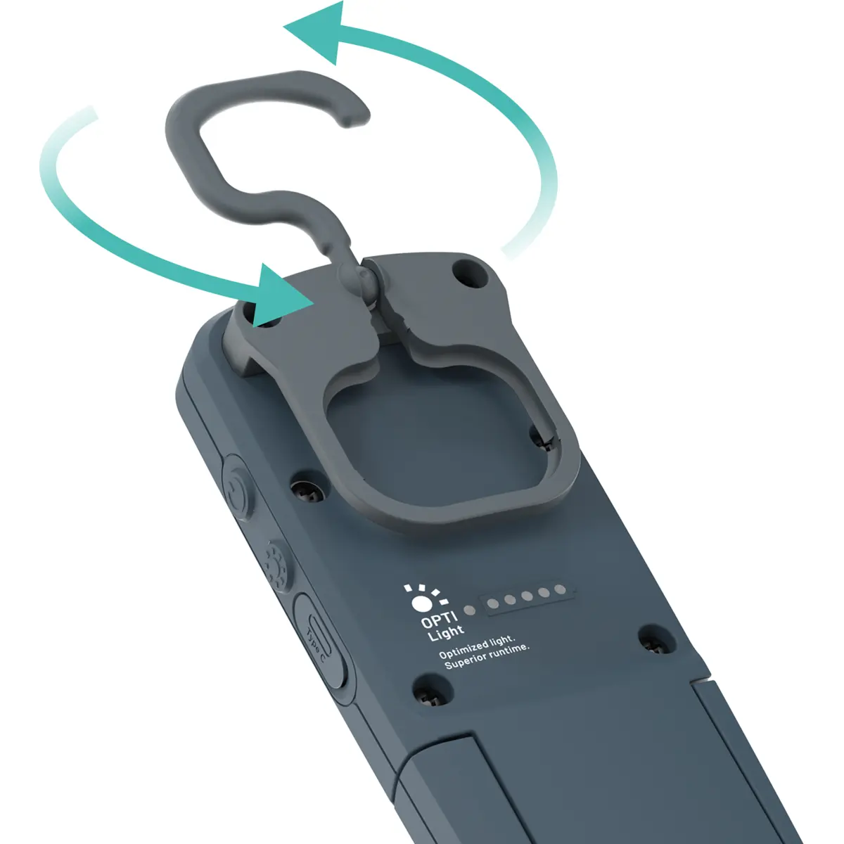 Projetada para resistir a ambientes de trabalho exigentes, a UNIFORM é resistente à água e a poeiras (IP65). As suas características incluem um gancho rotativo, um íman integrado forte e um clip para fácil fixação a um cinto de trabalho, permitindo uma posição flexível durante os trabalhos de inspeção. A cabeça da lanterna tem um ajuste flexível e pode inclinar-se até 180 graus, permitindo ajustar a direção da luz conforme necessário. Além disso, o cabo ergonómico e o design compacto tornam a lanterna fácil de transportar.