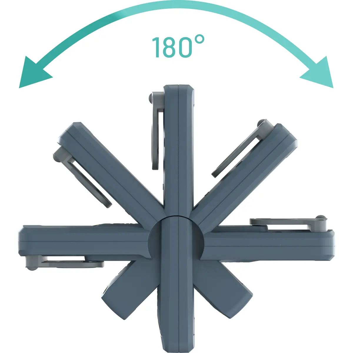 - Design compacto e flexível com gancho rotativo, íman integrado e clip