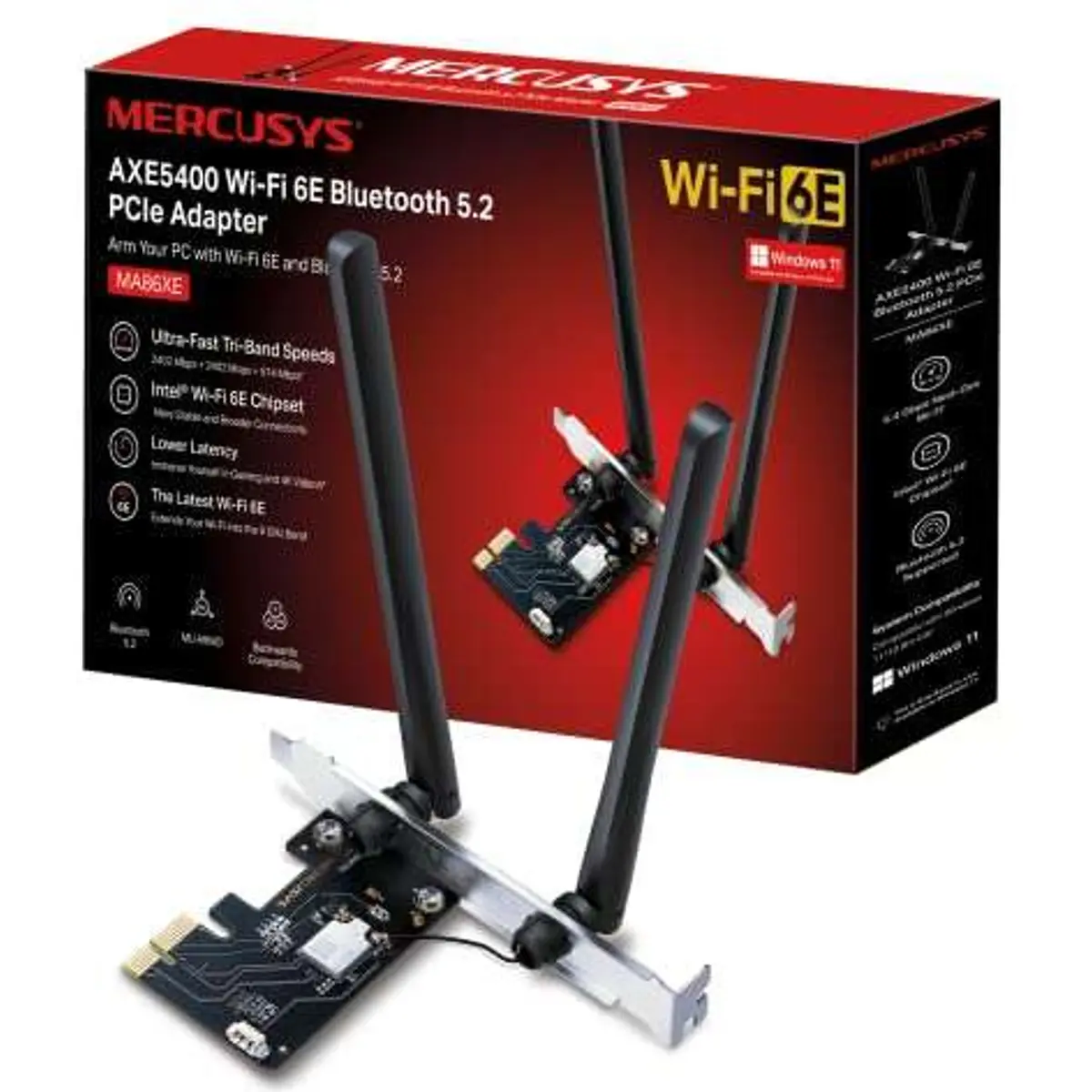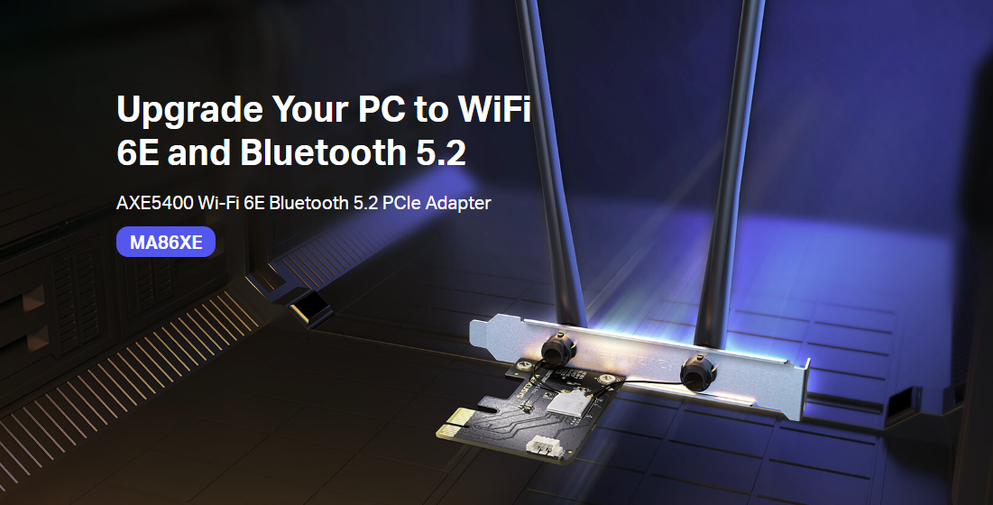◾ Placa PCIE Wi-Fi 6E, AXE5400, Bluetooth 5.2 (MA86XE)