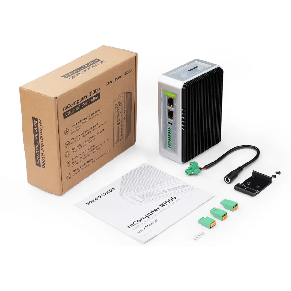 A reComputer R1000 é uma gama de controladores de Edge IoT, construídos com base na plataforma Raspberry Pi CM4, de alto desempenho. O reComputer R1025 é uma versão que possui um Modulo CM4 com 4GB de RAM, 32GB de eMMC e conectividade Wi-Fi/BLE integrada.