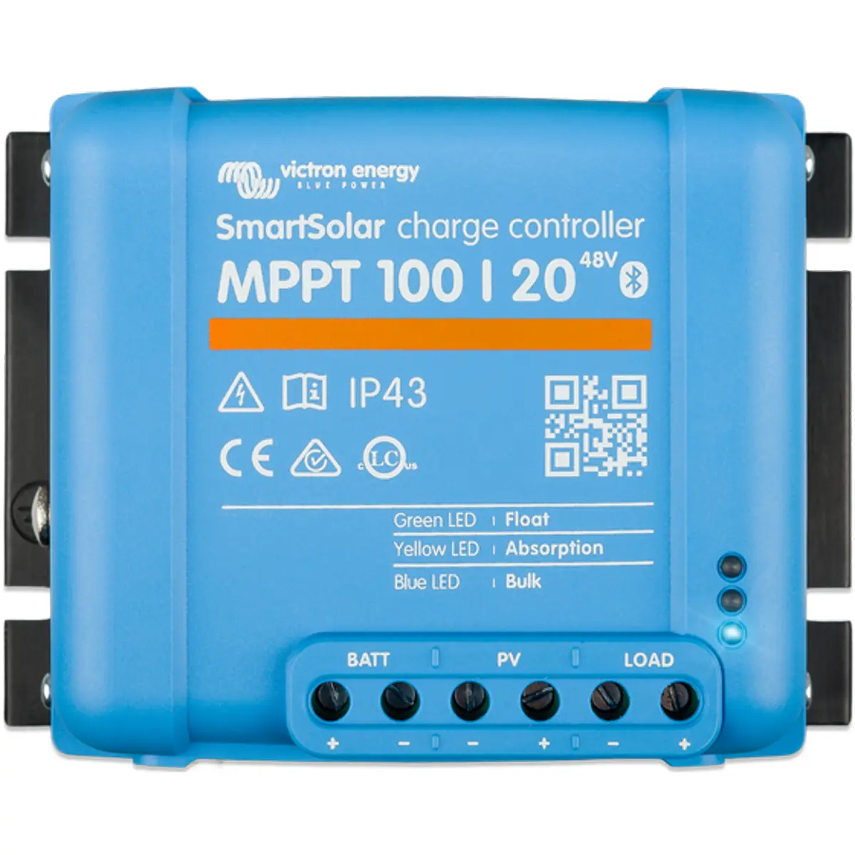 O SmartSolar MPPT 100/20 é um controlador de carga avançado projetado para otimizar a captação de energia solar e proteger as baterias, suportando sistemas de 12, 24 e 48V. Com conectividade Bluetooth integrada, permite configuração, monitorização e atualizações sem fios, garantindo máxima eficiência mesmo em condições de luz variável. O modelo inclui funcionalidades inteligentes para prolongar a vida útil das baterias e assegurar a sua operação segura.