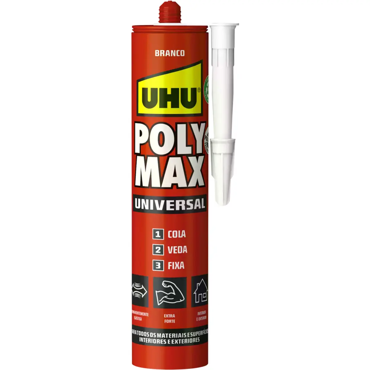 Recomendações de Utilização e Armazenamento:Condições de aplicação: Aplique apenas a temperaturas entre +5 °C e +40 °C.Requisitos da superfície: Ambas as partes devem ser sólidas e estar limpas e sem poeiras e gorduras. Não necessita de primário. A superfície pode estar húmida, podendo até ser aplicado debaixo de água.Ferramentas: Aplique o conteúdo do cartucho usando uma pistola de cola e veda. Se necessário, use um martelo de borracha para bater levemente na superfície de forma a espalhar mais o produto e ajustar a peça.Preparação: Antes de usar o cartucho, abra a parte superior cortando o bico de plástico acima da linha com uma faca afiada ou x-acto. Fixe o bico aplicador no cartucho e corte num ângulo com o diâmetro desejado. O bico aplicador tem marcas indicativas com diferentes diâmetros para optar de acordo com o tipo de aplicação a efectuar.Cobertura: Em cordões: um cartucho emite aprox. 8-15 metros de cola (dependendo do diâmetro do bico aplicador).Manuseamento da embalagem: COLAR E FIXAR: Corte o bico aplicador com um diâmetro de pelo menos 0,5 cm. SELAR: Corte o bico aplicador num ângulo com a largura de junta desejada.Instruções de utilização: COLAGEM E FIXAÇÃO: Aplicar em cordões ou pontos (a cada 10-40 cm). Posicionar correctamente o material (tem até 10 minutos para reposicionamento) e pressionar com firmeza, podendo utilizar um martelo de borracha. Se necessário, grampear ou escorar materiais pesados durante 4 horas. Pode ser manuseado após 4 horas. VEDAÇÃO: Aplicar uniformemente na junta e ajustar nos primeiros 10 minutos com uma espátula ou dedo humedecido em água e sabão. Cura completa após 24h, dependendo da espessura.Pontos a ter em conta: Os tempos de secagem baseiam-se na colagem de pelo menos um material poroso com uma camada de cola de aprox. 1 mm. Para materiais não porosos e/ou camadas mais espessas, o tempo de secagem pode ser mais longo.Manchas/resíduos: Use aguarrás para limpar ferramentas e remover resíduos de cola. A cola seca deve ser removida mecanicamente com uma espátula ou x-acto. Resíduos remanescentes podem ser retirados com aguarrás ou Removedor de Cola UHU.Condições de armazenamento: Guarde o recipiente bem fechado num local seco, fresco e ao abrigo do frio extremo. ▶ Ficha técnica (PDF)