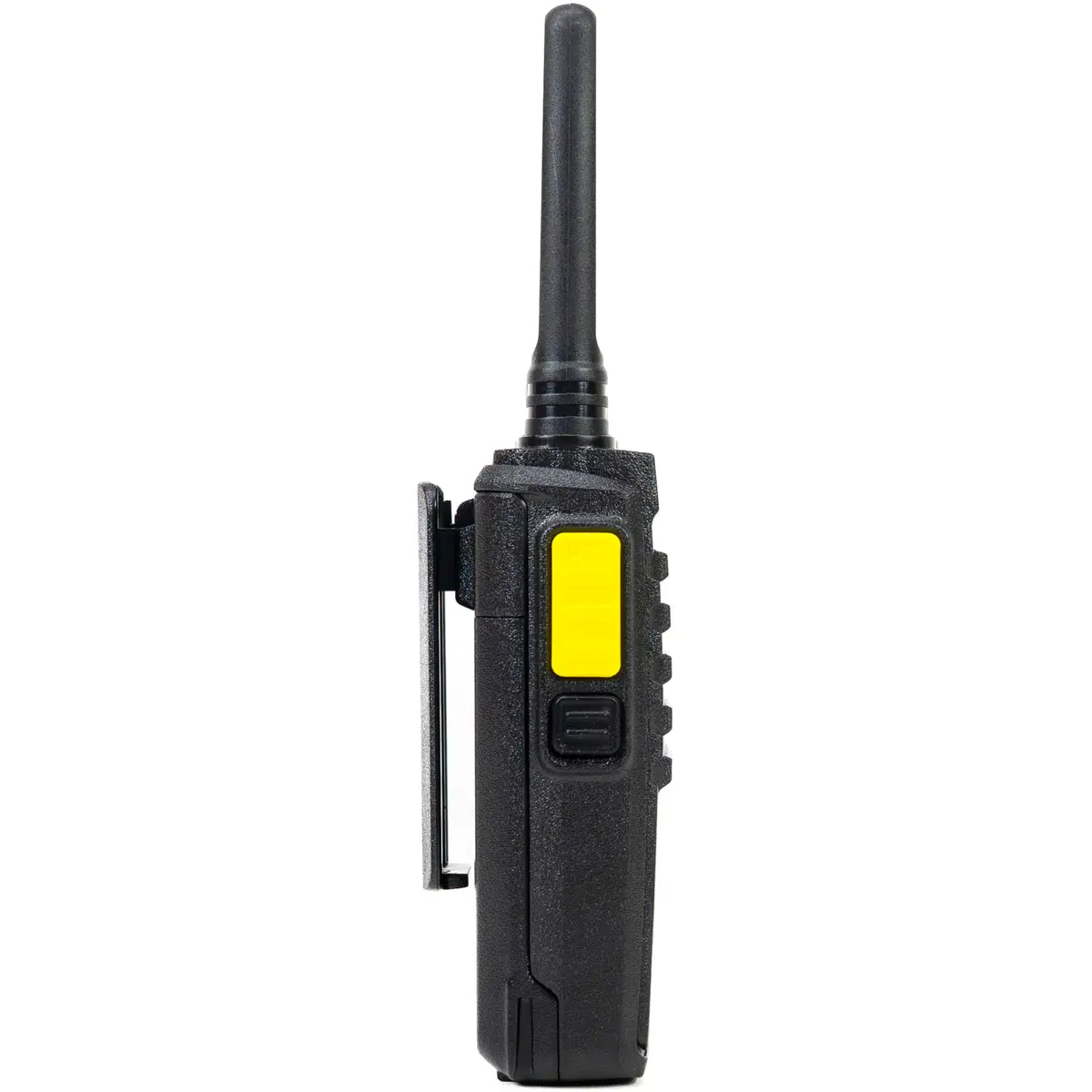 Este walkie-talkie compacto suporta o padrão dPMR446, oferecendo comunicação de curta distância em modo digital/analógico. Conta com 16 canais na faixa de 446 MHz, compatibilidade CTCSS/DCS para evitar interferências, e bateria Li-Ion recarregável de 1500 mAh para uso prolongado. Equipado com TOT, Scan, Monitor e Programação, opera em simplex sem repetidores. A antena destacável de 50 ohm, corpo robusto e dimensões compactas (62 x 38 x 124 mm) facilitam transporte e uso diário. Potência de emissão ≤ 0.5 W ERP, alimentado por 3.7 V DC.