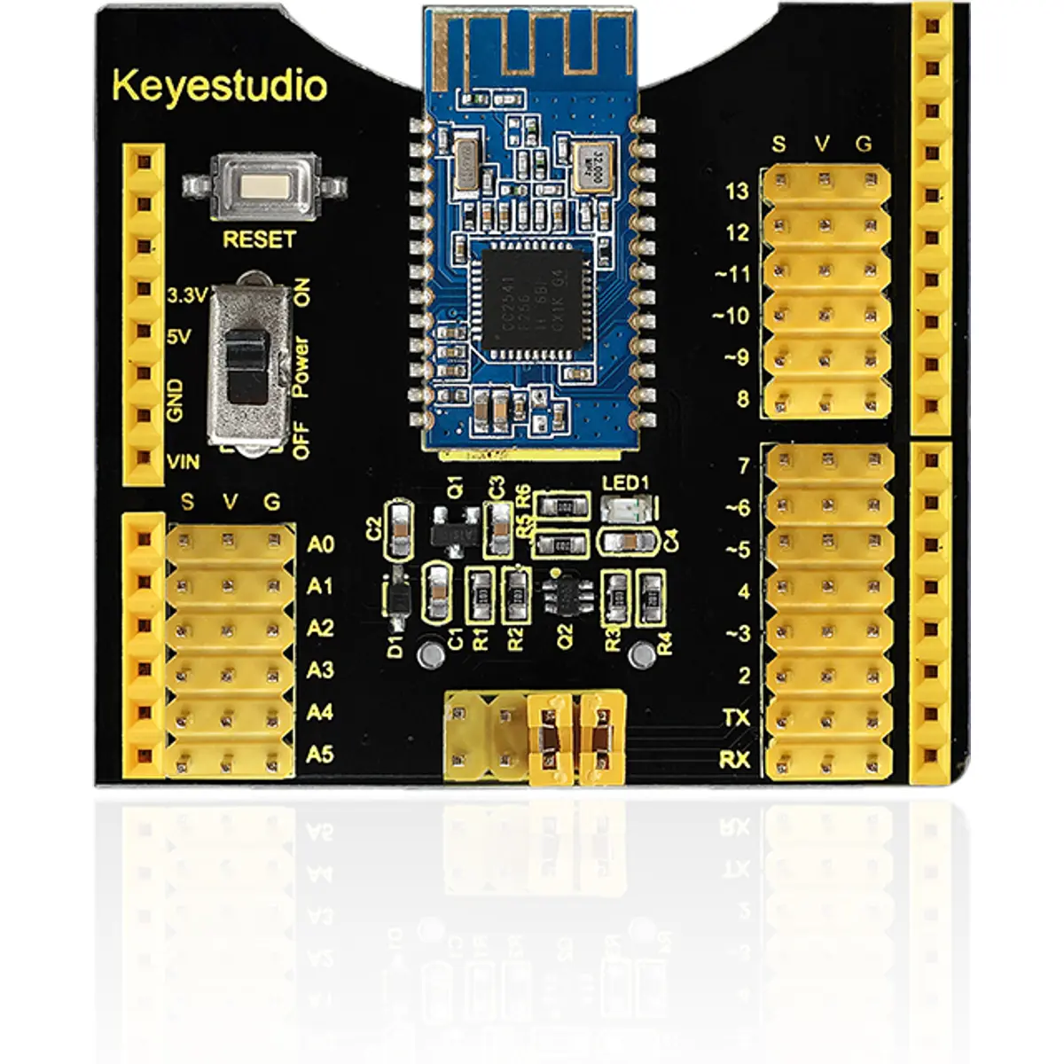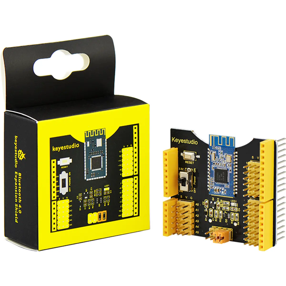Este módulo de expansão combina com um sensor shield com o módulo HM-10 Bluetooth 4.0, totalmente compatível com a placa Arduino UNO R3. Permite uma ligação fácil e direta, bastando encaixá-lo sobre a placa principal. Todos os pinos digitais e analógicos são disponibilizados em conectores de 3 pinos, facilitando a ligação de sensores e módulos externos.