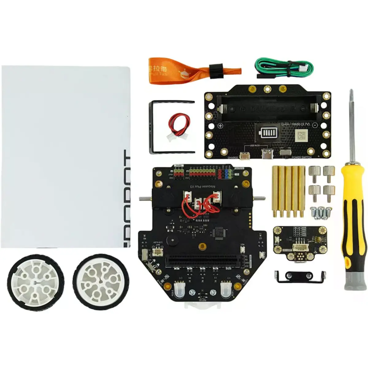 O Maqueen Plus V3 é um robô educativo avançado concebido para o ensino STEM e competições de robótica em contexto escolar. Com um poderoso sensor de distância laser matricial, encoders de motor com controlo PID, algoritmos integrados de seguimento de linha e reconhecimento de interseções, e suporte para bateria recarregável 18650, oferece uma plataforma robusta e precisa para aprendizagem e experimentação. A sua estrutura metálica modular, iluminação RGB e sensores de luz integrados tornam-no ideal para aplicações interativas e criativas.