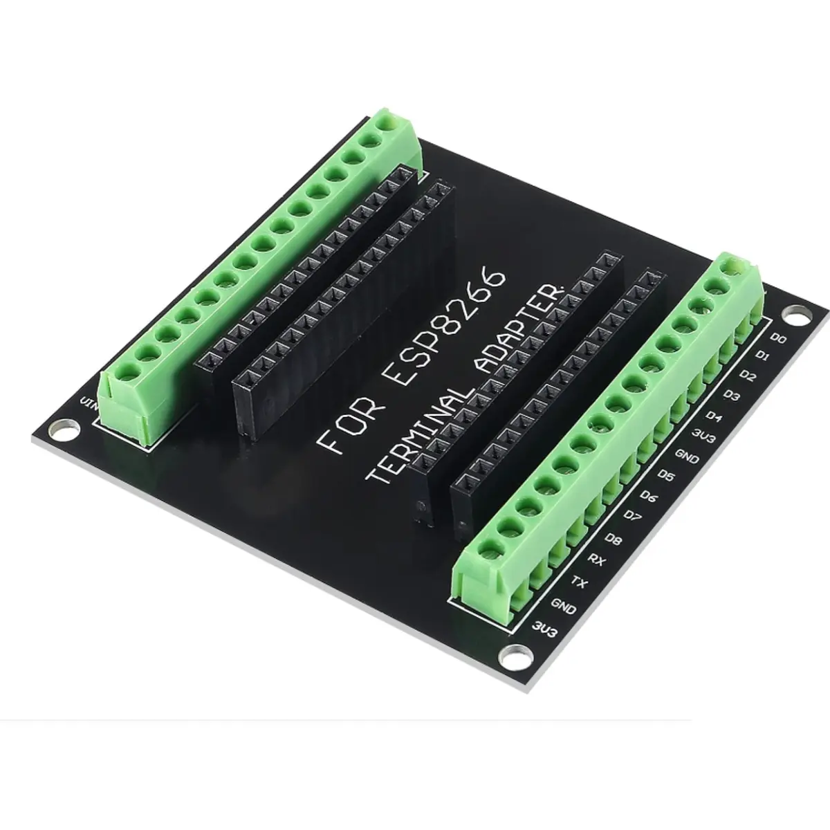 A Breakout Board para ESP8266 (compatível com NodeMCU V2) é a solução definitiva para simplificar as ligações nos seus projetos de IoT e prototipagem rápida. Projetada para expandir os pinos limitados do módulo ESP8266 para terminais de parafuso robustos e seguros, esta placa elimina a necessidade de soldaduras complexas ou o uso de breadboards instáveis em instalações permanentes. Com uma gestão de energia integrada que suporta uma ampla gama de tensões de entrada, esta base de expansão transforma o seu microcontrolador numa plataforma industrial pronta para controlar sensores, relés e atuadores com total estabilidade e organização.