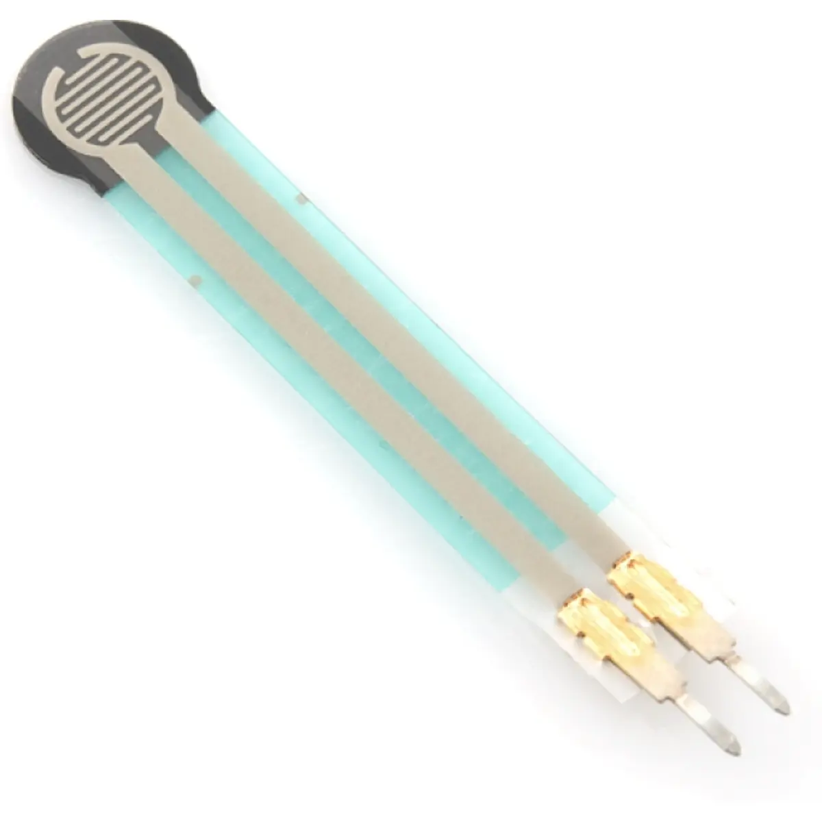 Sensor de pressão sensível à força com resistência variável, detecção Ø4 mm. A resistência aumenta para além de 1MΩ na ausência de carga e desce para cerca de 2,5kΩ com pressão total, facilitando medições de toque em circuitos. Com 44,5 mm de comprimento e 7 mm de largura, é adequado para protótipos e integrações em microcontroladores, oferecendo resposta rápida e simples para aplicações de monitorização de pressão, toque e contacto em equipamentos eletrónicos.