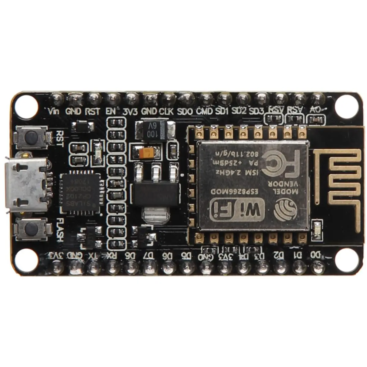 O NodeMCU V2 está no kit de desenvolvimento baseado no ESP8266 com firmware de código aberto. Com apenas algumas linhas de script Lua, é possível criar seu próprio projeto de IoT com este módulo.
