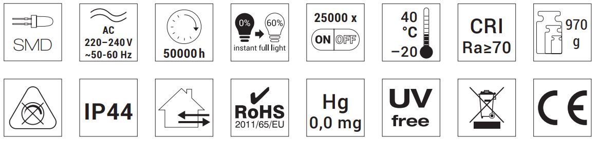 - Índice de protecção: IP44